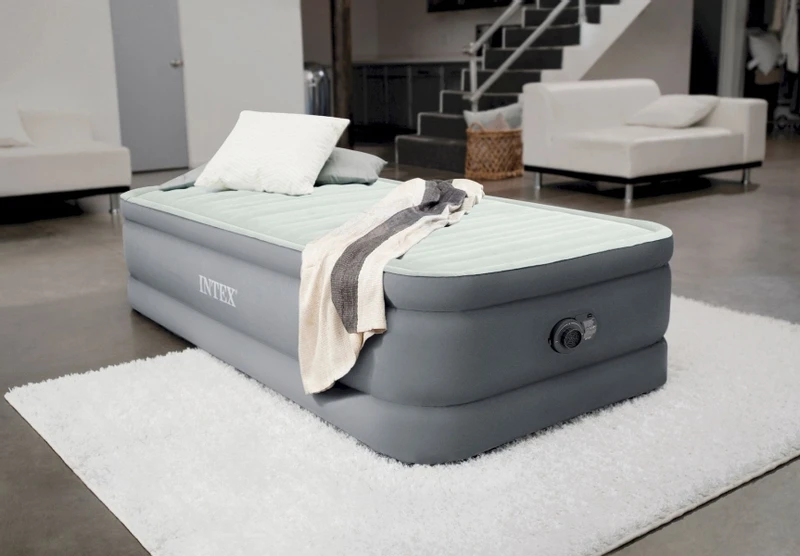 Het Intex PremAire luchtbed zorgt voor een stabiele nachtrust door de Dura Beam Fiber-Tech technologie. Daarbij is het ‘ie voorzien van een flock- en pillow toplaag. De flocklaag geeft extra warme en comfort, de pillowlaag zorgt er juist voor dat de lucht zich geleidelijk verplaatst. De combinatie van deze twee lagen zorgen ervoor dat het luchtbed stevig en stabiel is en zich naar je lichaam vormt. Door de hoogte van 46 cm kost het minder moeite om ‘s ochtends uit het luchtbed te stappen. Extra fijn voor degene onder ons die geen ochtendmensen zijn!