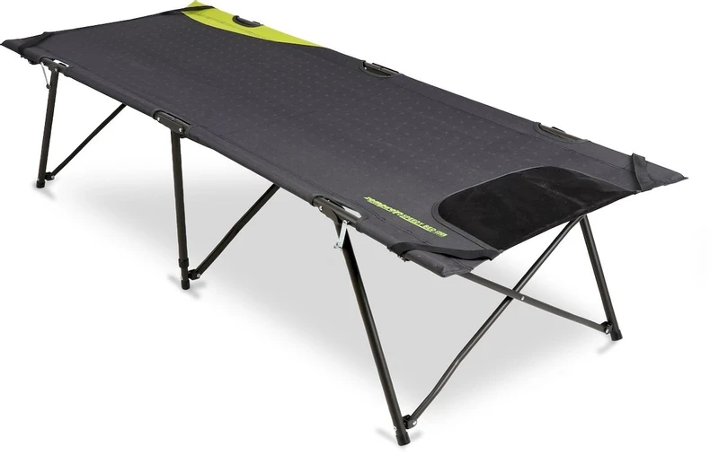 Bij het hoofdeinde is het bed een stukje gevoerd en gewatteerd voor extra steun bij je hoofd tijdens het slapen. Ook heeft het ligbed in elke hoek bandjes waar je je slaapmat onder doet zodat je slaapmat ‘s nachts niet samen met jou van het ligbed glijdt. De Anti-sway stabiliserende pootjes zorgen ervoor dat jouw bed stabiel staat en niet heen en weer wiebelt waardoor je heerlijk kunt slapen. Dit ligbed is dus door zijn stabiliteit extra comfortabel. Slaaplekker!